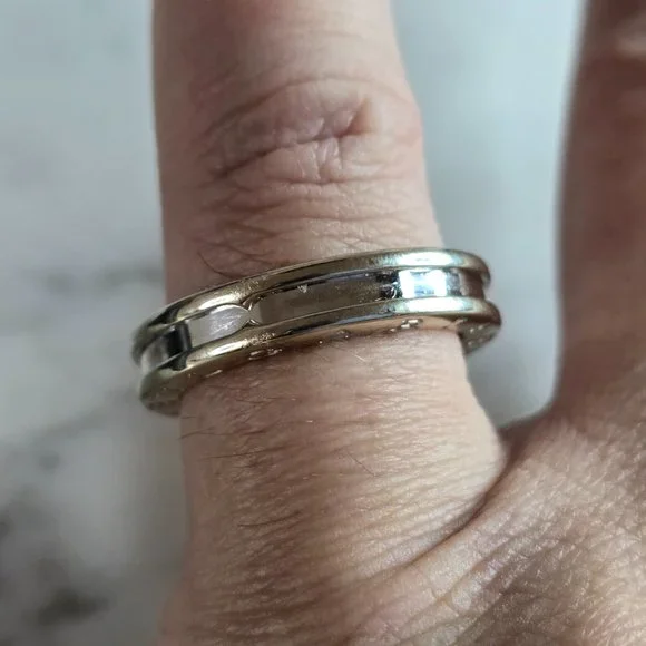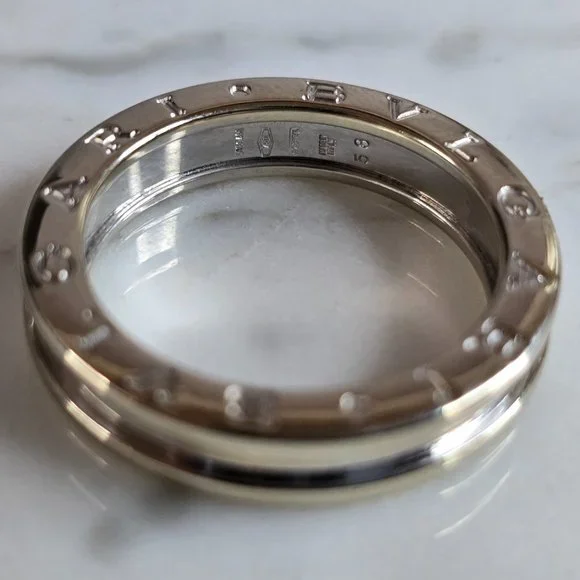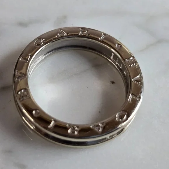 A MENS ESTATE 18K WHITE GOLD BVLGARI WEDDING BAND RING.THE RING WEIGHS 8.0g AND IS A SIZE 8.5.THE WIDTH OF THE RING IS ABOUT 3/16".MARKED ON THE INSIDE OF THE BAND AS WELL.A GREAT DEIGNER RING. THIS MAKES A LOVELY GIFT FOR THAT SOMEONE SPECIAL.IF ANY QUESTIONS, PLEASE ASK.BE SURE TO CHECK OUT OUR OTHER ITEMS.THANK YOU.