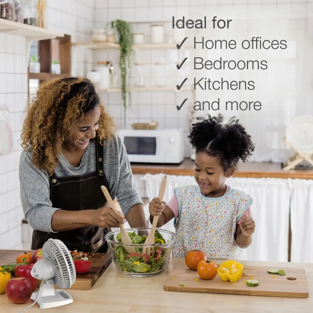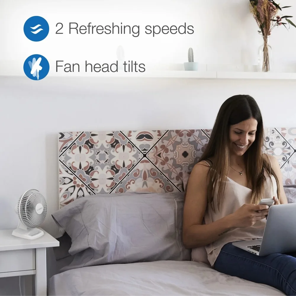 6" Personal 2-Speed Table Fan with Storage Tray, 9" H, White, New