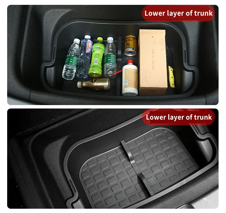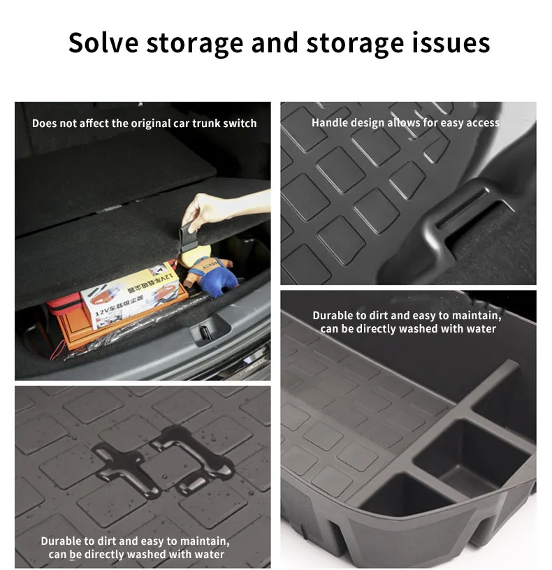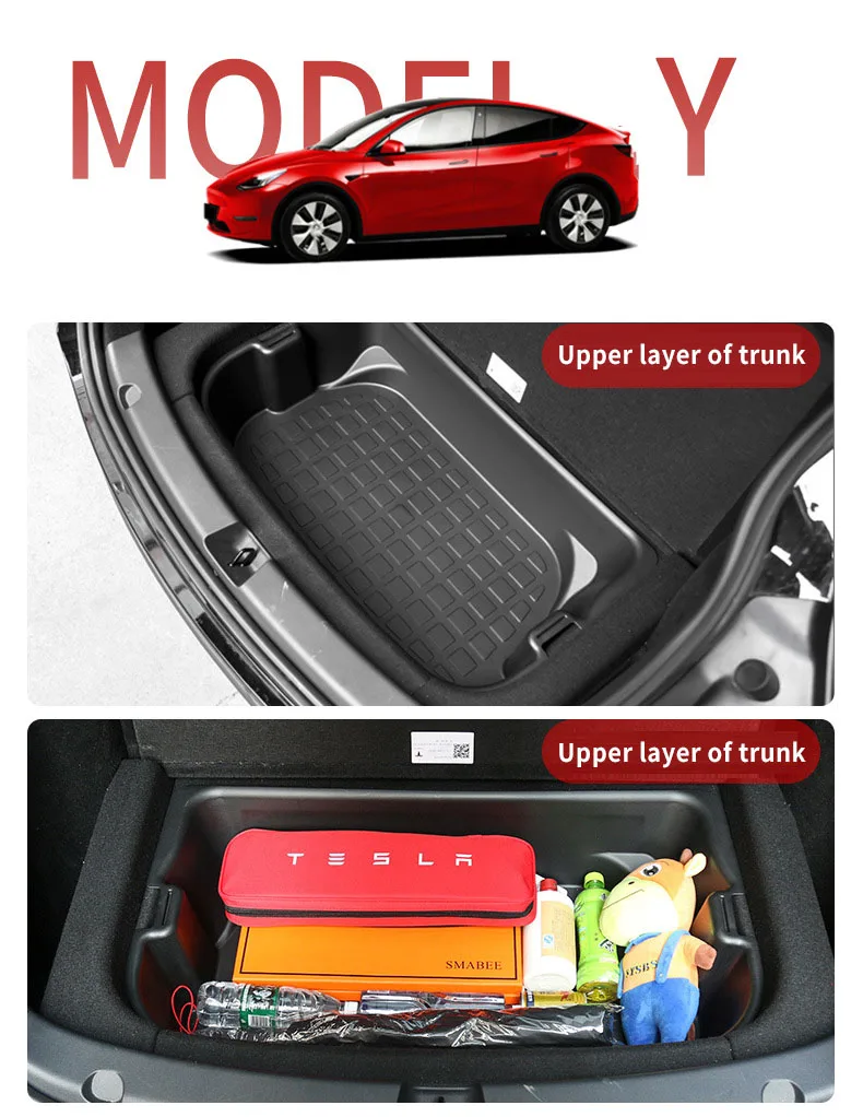 Trunk Storage Organizer, Tray Rear Trunk Inside Tray and Upper Lower Rear Storage Bins Boxes for 2020-2024 Tesla Model Y Accessories