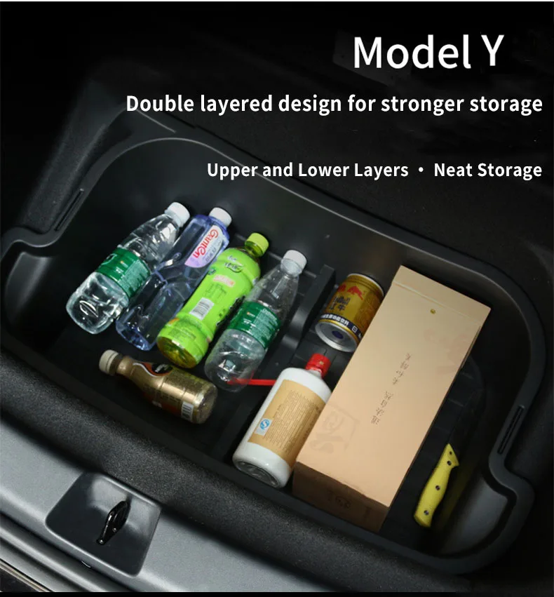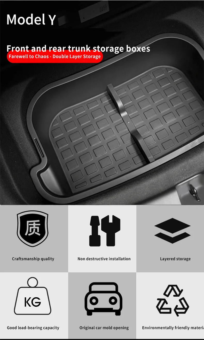 Front & Rear Trunk Storage Box For Tesla Model Y 2024 Double-Deck Luggage Frunk Organizer Box Dustproof Cargo Multi-functional