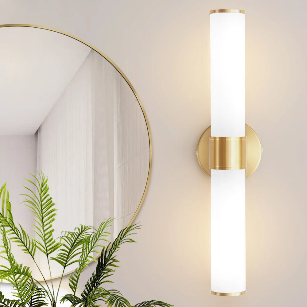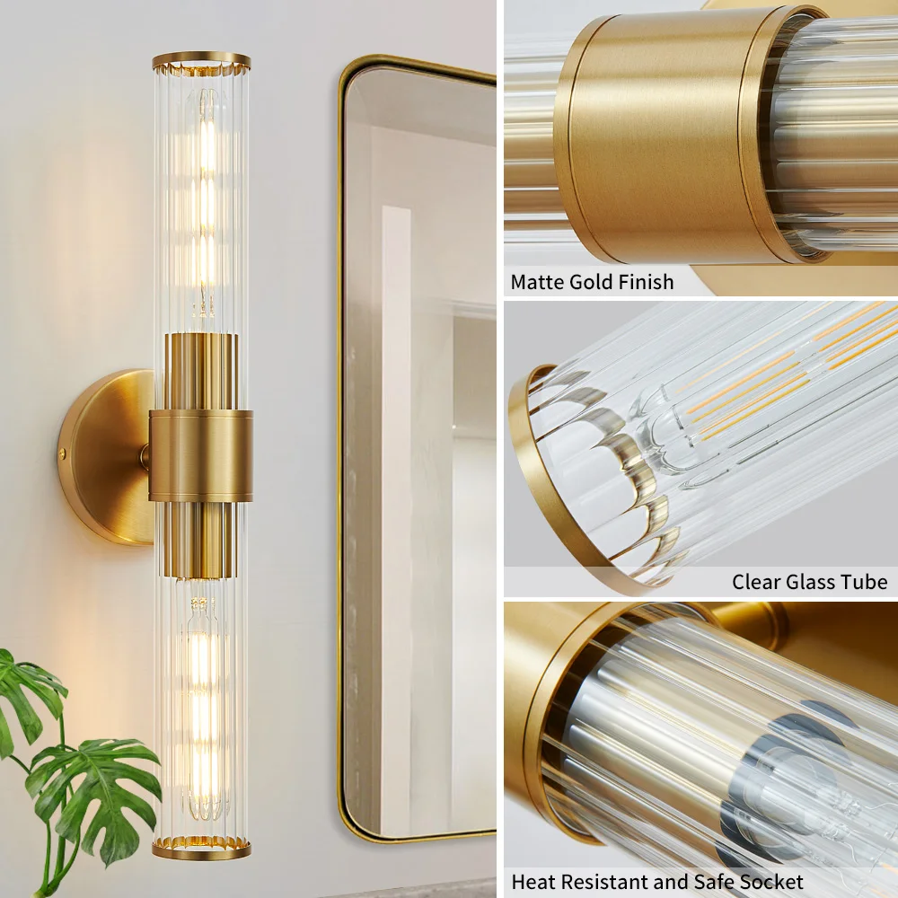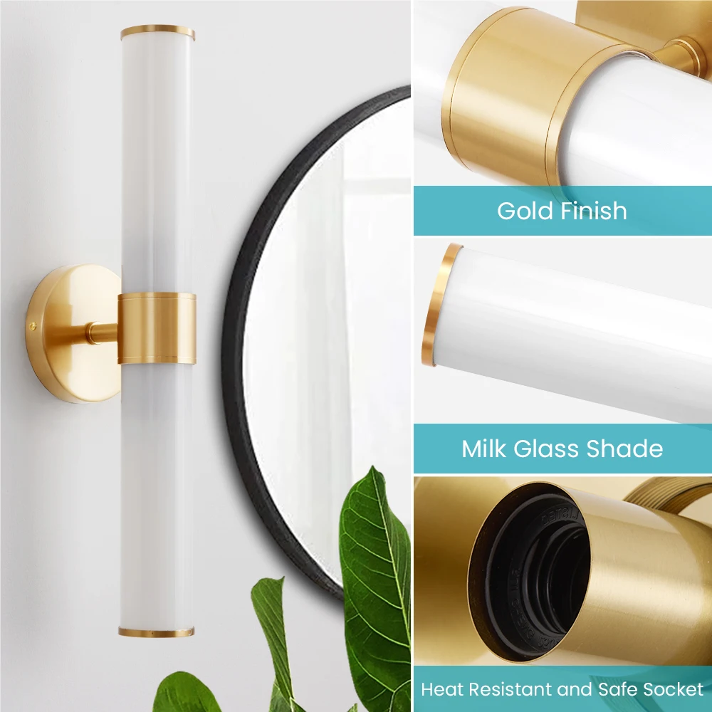��HIGH QUALITY & DURABLE: Bathroom lights over mirror is made of sturdy metal with advanced plating process, which makes the vanity light durable. The thickened cylindrical threaded glass shade allows the light to be diffused farther and brighter for eye protection.