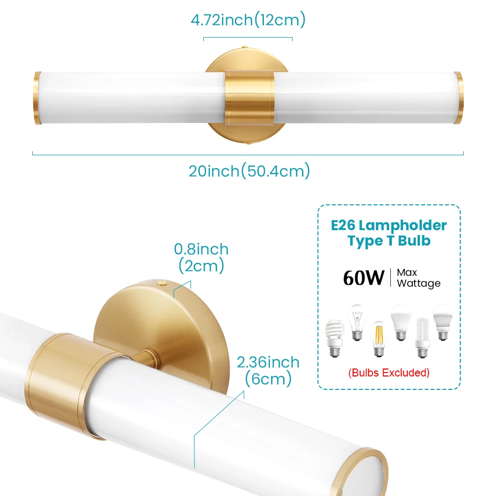 ��APPLICABLE BULBS: Bathroom vanity light with E26 base, typeT-bulb recommended, 60W max; fully dimmable when using dimmable bulbs and compatible dimmer switch. (Bulb and dimmer switch excluded)