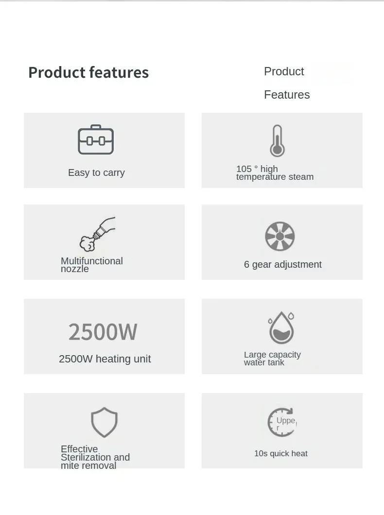 1.2500W heating body, high pressure, strong power, strong acid resistance, can add liquid medicine or disinfectant, etc.