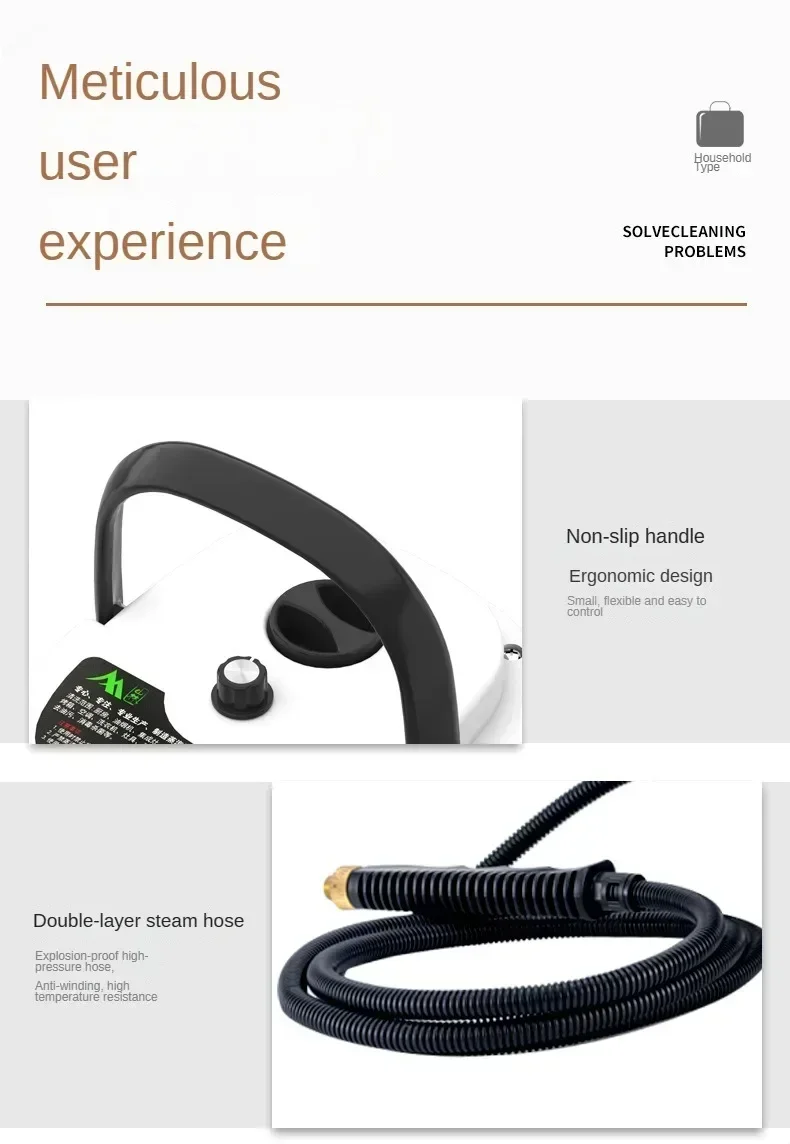 3.Lengthen the power cord and steam hose, single person operation is not laborious, can meet the cleaning needs.