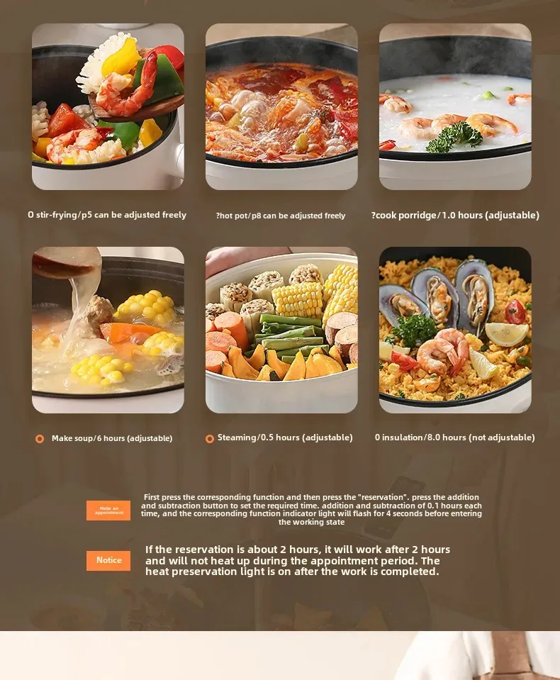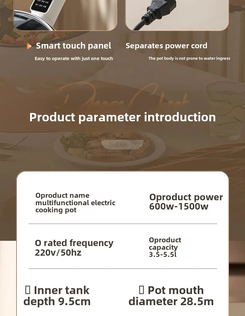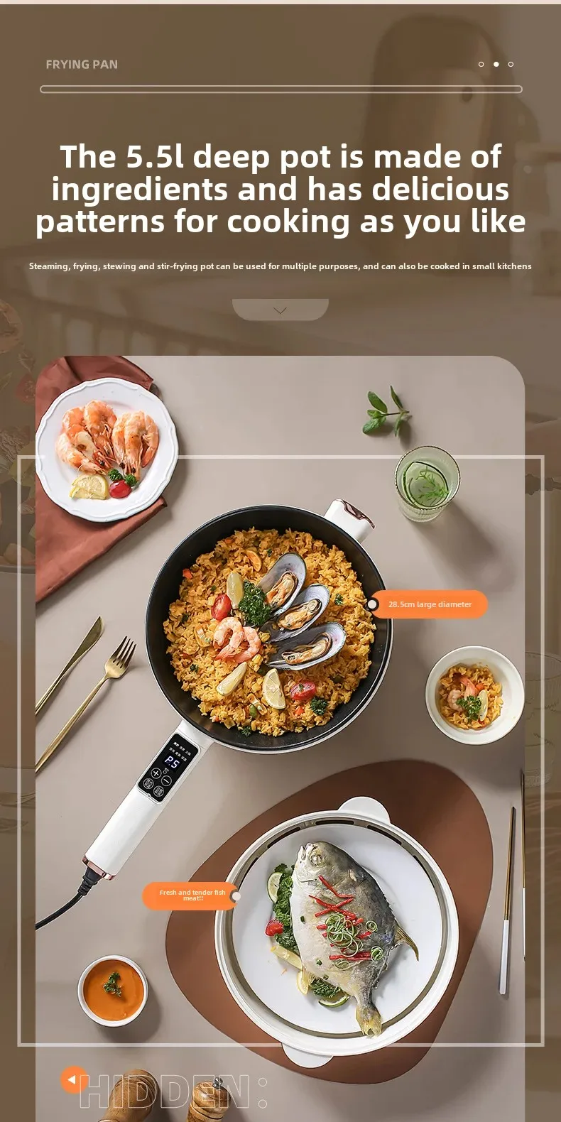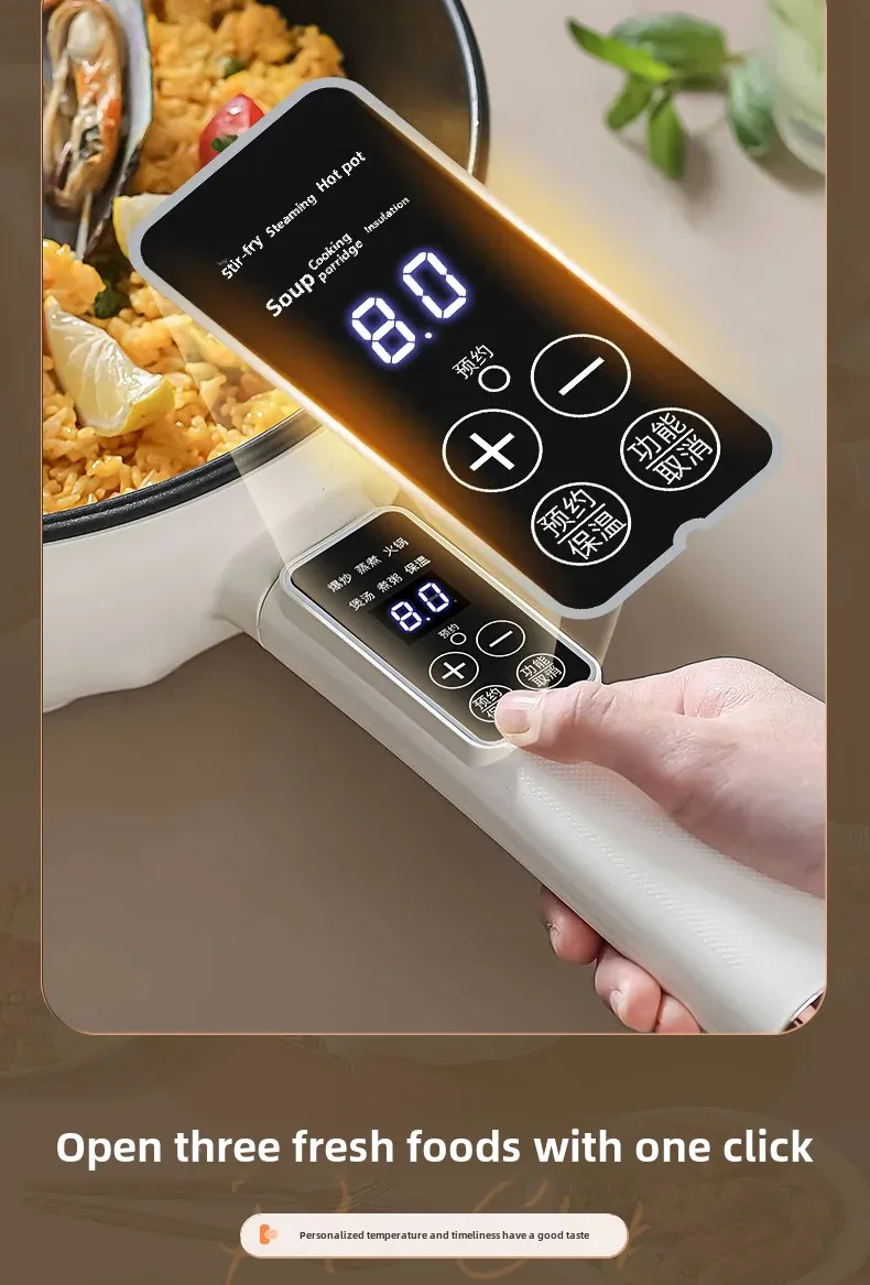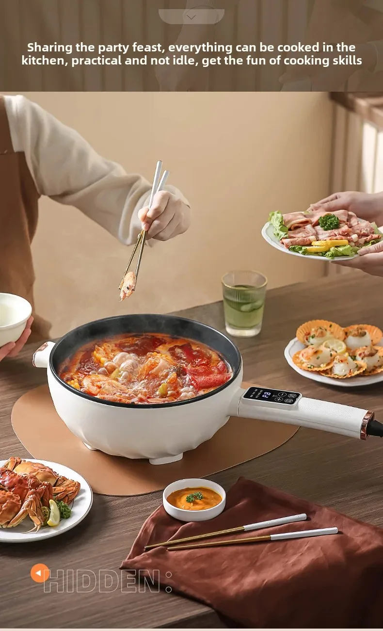 • Multifunctional Design : This multifunctional electric pot can be used as a hot pot, cooker, and frying pan, offering versatility in your kitchen.