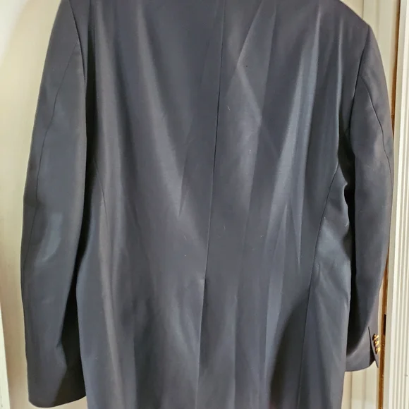 Great shape Men's sports coat in wool. Gold buttons in front and on sleeves. IT IS MISSING ONE BUTTON ON SLEEVE AS SHOWN IN PICTURE. Sharp looking sports coat!