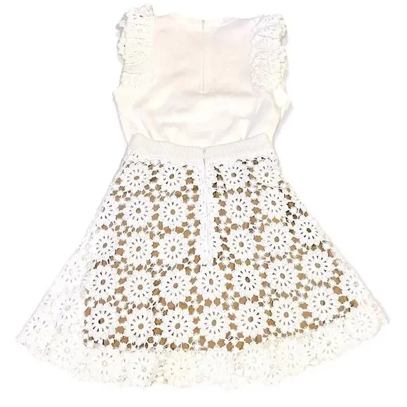 MICHAEL Michael Kors | White Medallion Lace Skirt Set Size XSExcellent like New (skirt) & NWT (top) Condition.Crafted from romantic lace with a sand-hued lining to accentuate the intricate medallion patterns.Pair for an elevated ensemble, or mix and match separates with classic basics for a laid back vibe. Skirt + Top 2 Piece Set100% CottonLining:100% PoleysterMachine WashImportedRetails for:$370Skirt:Zip FasteningSupport band at waistMini styleStyle # MU97EZBXWRetail:$175Measurements: Length 18”, 25" Waist, 34.5" HipsTop:Zip FasteningFlutter SleeveDetachable camisoleStyle # MU96P0DBXWRetail:$195Size Guide:0 (XS)