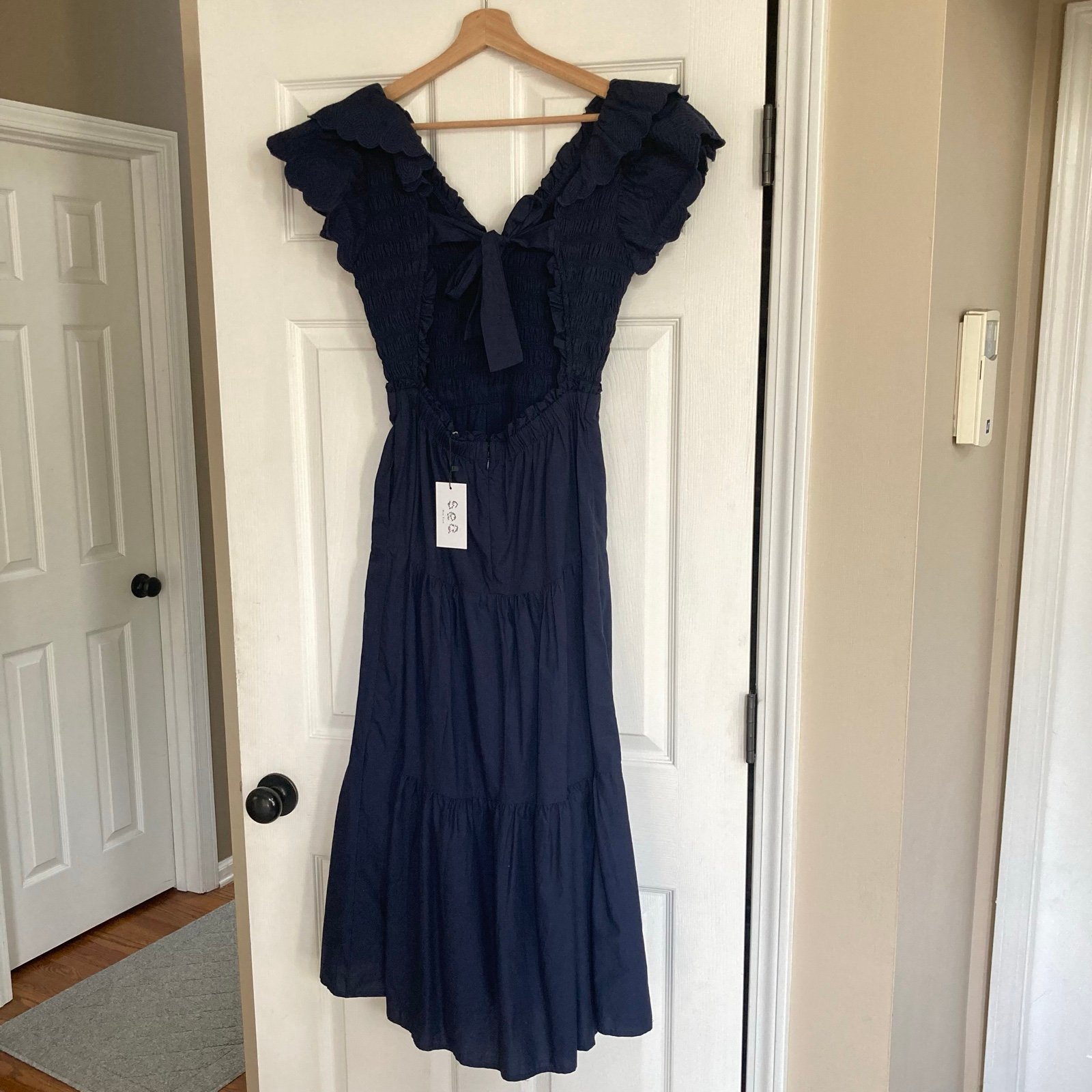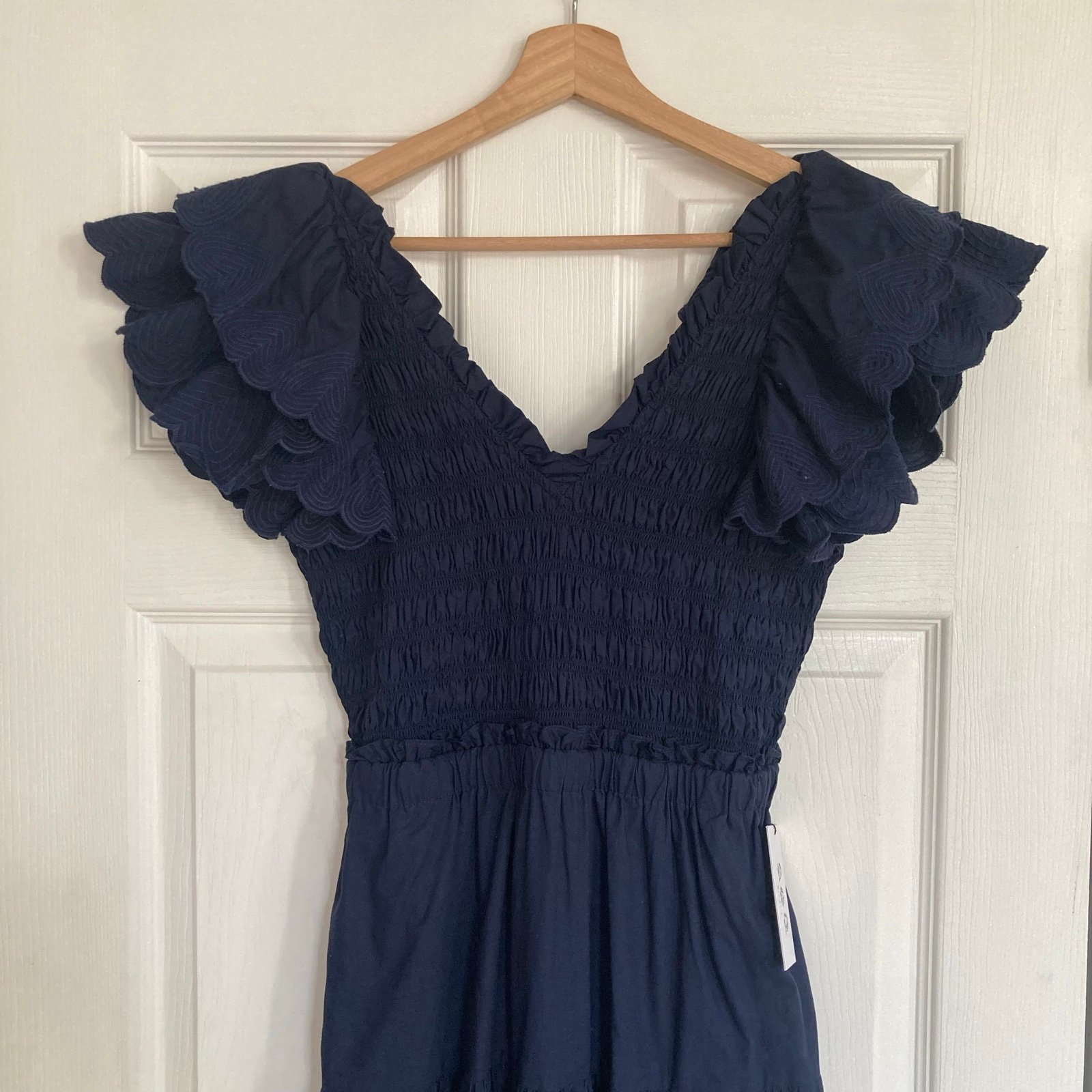 Sea New York Heidi Heart Quilt Flutter Sleeve Smocked Navy Midi Dress, Size 4. New with tag. Retailed for $398.