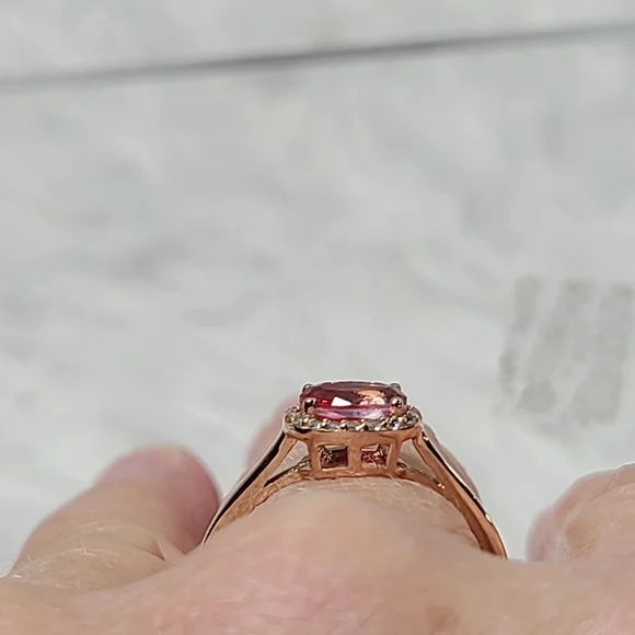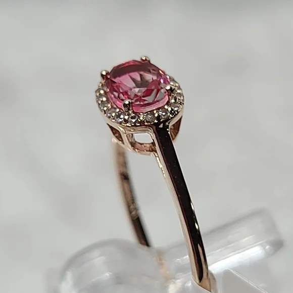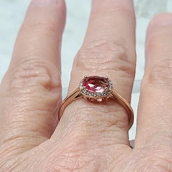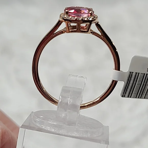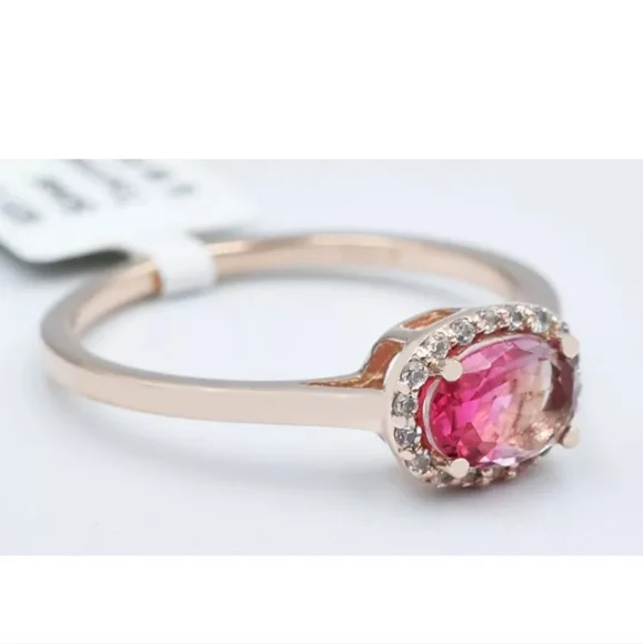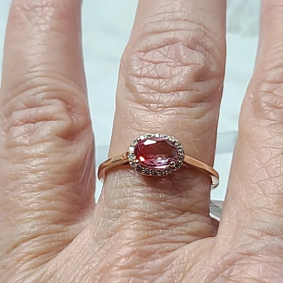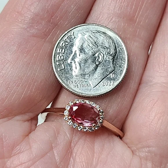 Beautiful Pink, lab created, oval cut Tourmaline set in an East West design, Sterling Silver with rose gold finish ring. NWT Size 8.THANKS FOR SHOPPING MY CLOSET!😎