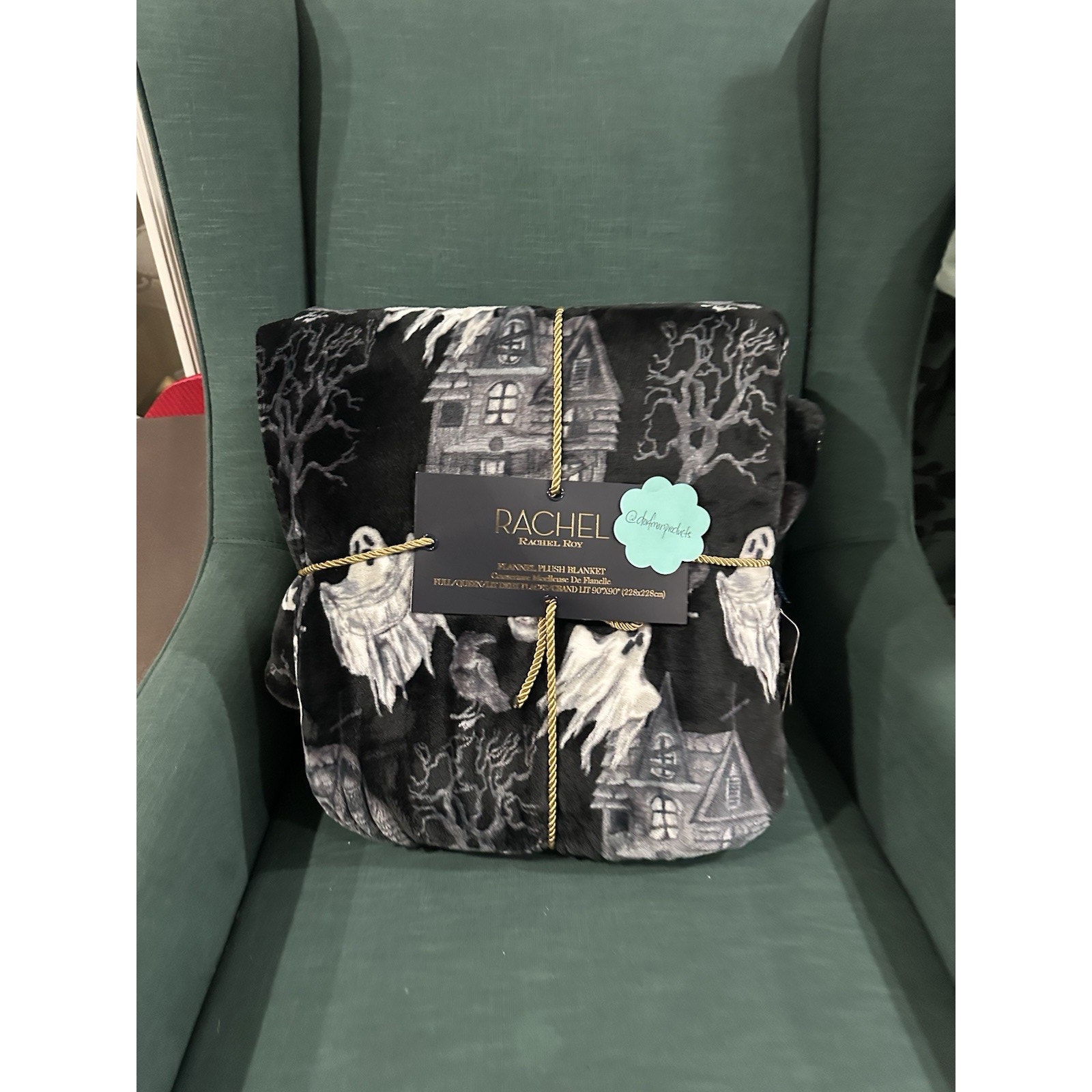 The Rachel Rachel Roy Halloween House Raven Skull Ghost Flannel Plush Queen Blanket is a stylish and spooky addition to any bedroom. Made from a comfortable 100% polyester , this black blanket features haunted house, Black tree, skull, and black raven design. Perfect for adding a touch of Halloween spirit to your home, this Queen-sized blanket is cozy and perfect for chilly nights.