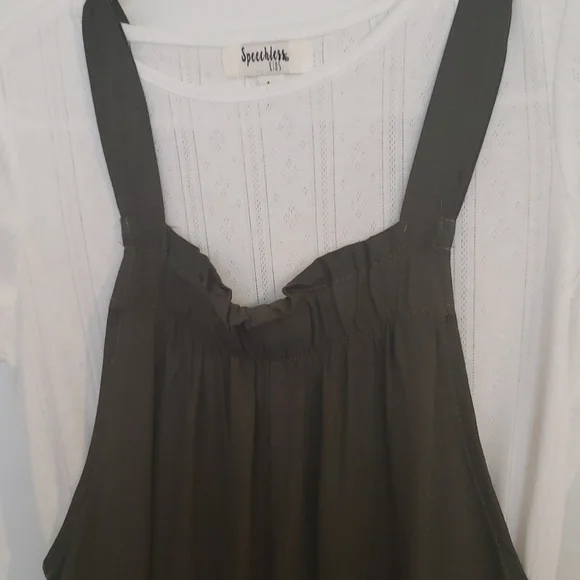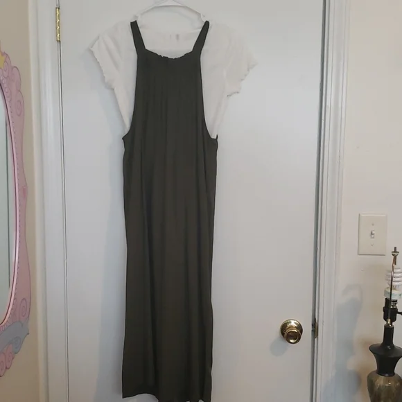 This girls stylish olive green pant jumper and white shirt is in excellent condition. Tags have been removed, but while my granddaughter liked it in the store, she tried it on at home and didn't want it. (sad because it is so cute) Brand new, never worn (my phone doesn't show the true color but is a beautiful olive green)Excellent condition Machine washable in cold.The shirt can be worn separately. Check out my other listings and bundle two or more listings and save!!!Most reasonable offers accepted!#326 ☆ 9-A2024