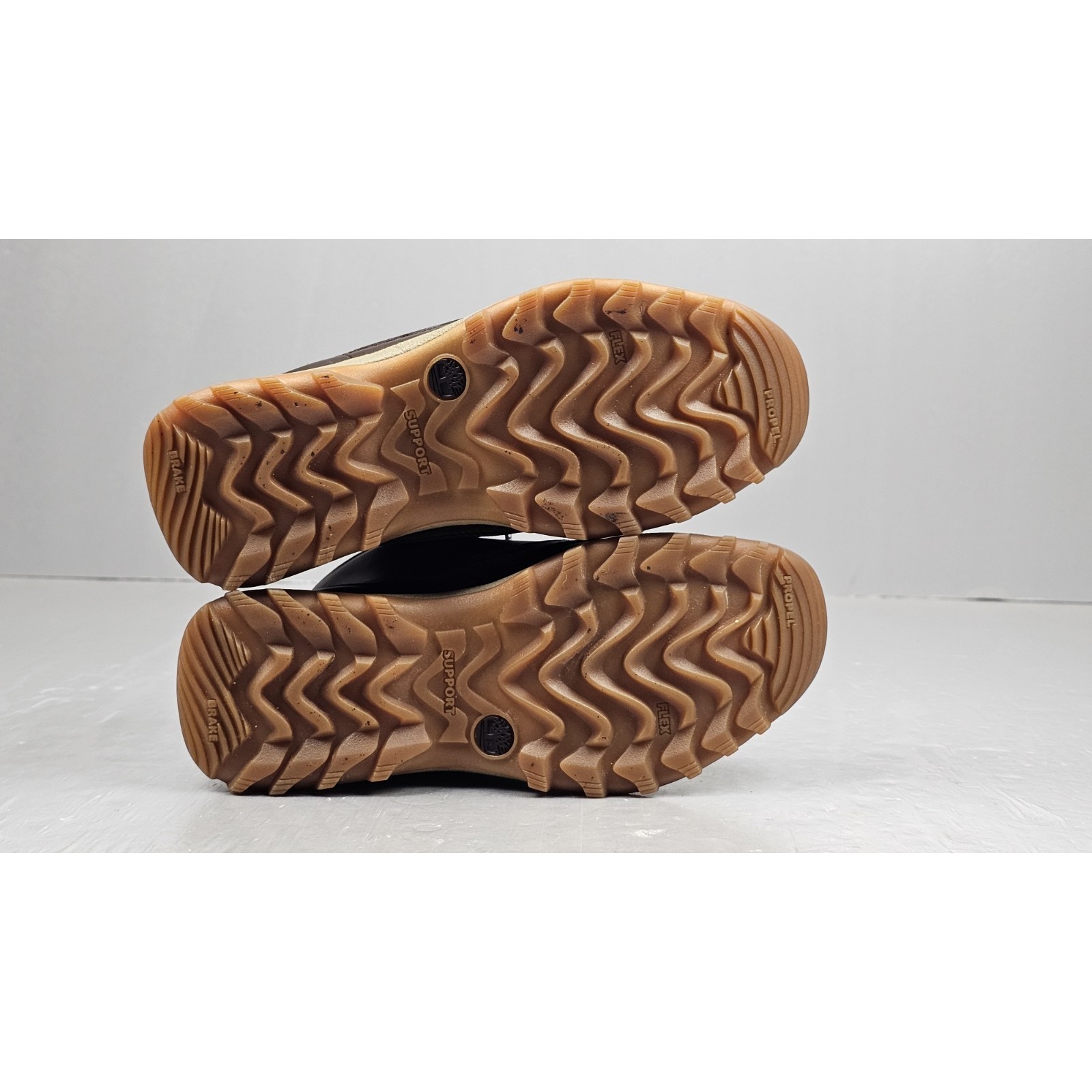 The Timberland Duck Boots for men in size 9 features a solid brown leather construction with a waterproof design, making it perfect for outdoor use in various weather conditions. The lace-up closure and ankle height provide a secure fit, while the faux leather lining ensures comfort. With a round toe shape and durable leather outsole, these boots are ideal for activities like hunting, winter adventures, or casual outings in colder seasons. The Timberland brand is known for its quality footwear, making these boots a reliable choice for any outdoor enthusiast.