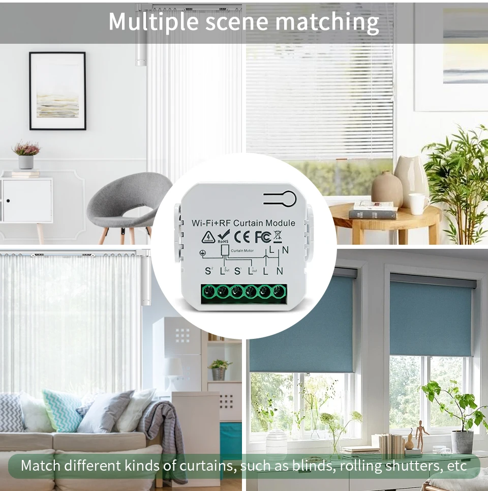 [Use with Much More Convenience with stop function on traditional switch]A really good substitution for a more new smart roller blind switch to work with your traditional curtain switch to realize intelligence. Press your traditional curtain switch once after switch to up/down (On the same button) to manually stop your curtains easily. Also, it can be connected with your roller blinds shutter motor to cleverly control your curtains.