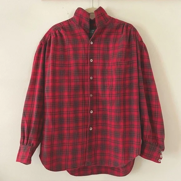VTG Ralph Lauren CountryUnique and rare vintage piece. Excellent condition. The collar and pleating along chest, back and shoulder give this a romantic feel, very Doen meets cottage core. Ralph Lauren Country100% Cotton (Flannel feel)P2P 24”Length 28”ApproxDropped shoulder subtle puff sleeve. Front pocket. Metallic colored buttons. The red and black is more faded:muted, on iPhone camera it appears more vibrant in some photos despite trying different exposures. Original owner is a family member, so if you would like more vintage history details, just drop me a comment. Button-up. Button-down. Western.